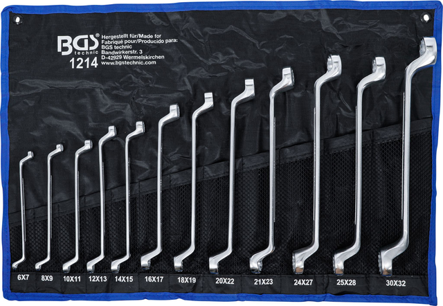 Jeu de clés à œil doubles | coudées | 6 x 7 - 30 x 32 mm | 12 pièces